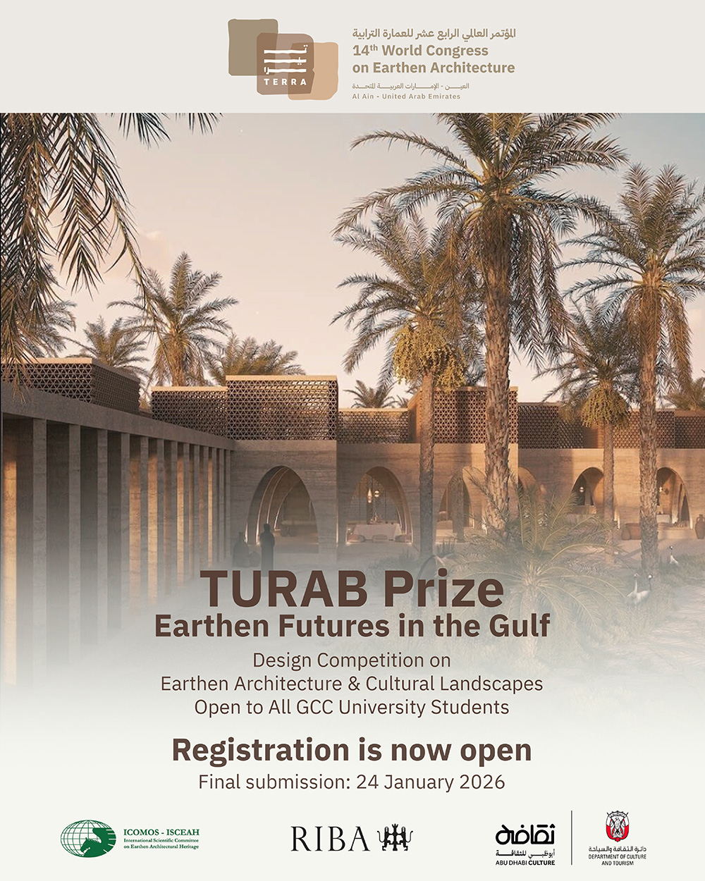 The Terra 2026 World Congress in Al Ain is the 14th edition which will be organised by Department of Culture and Tourism- Abu Dhabi with the main theme “Managing Change in Earthen Cultural Landscapes”. This is the first time it will be hosted in the Arab region and is expected to draw 700 – 1000 participants with an estimated 120 – 150 presentations.